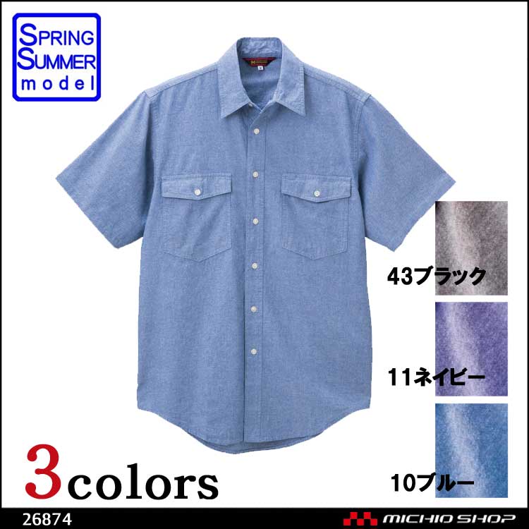 作業服 KURODARUMA クロダルマ半袖シャツ カジュアルシャツ ダンガリー 26874